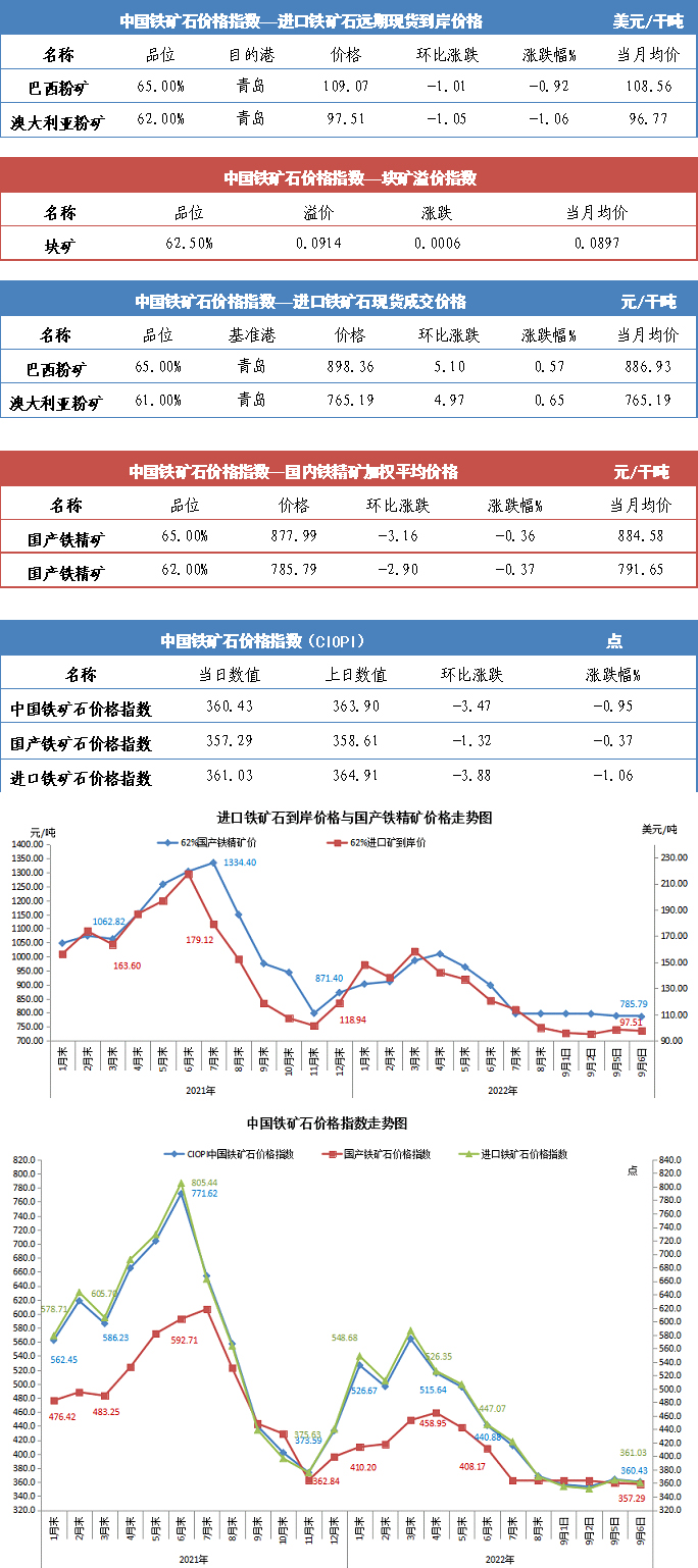 【行業指數】9月6日中國鐵礦石價格指數