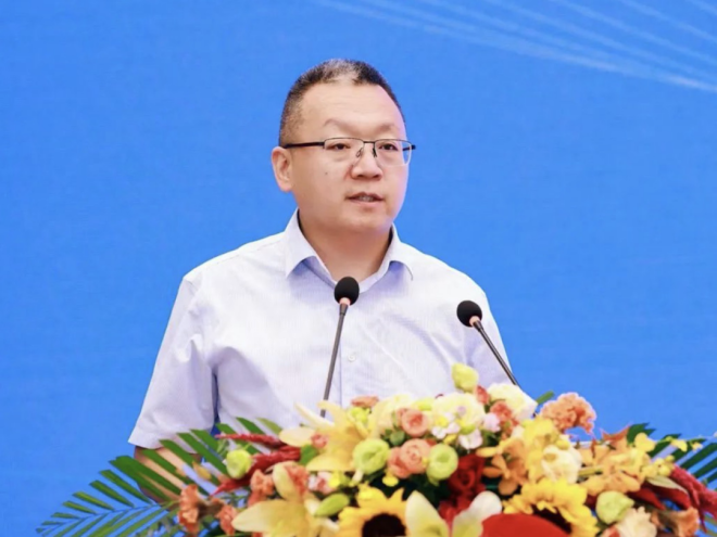 圖為首鋼技術研究院副院長王鬆濤作主題報告。