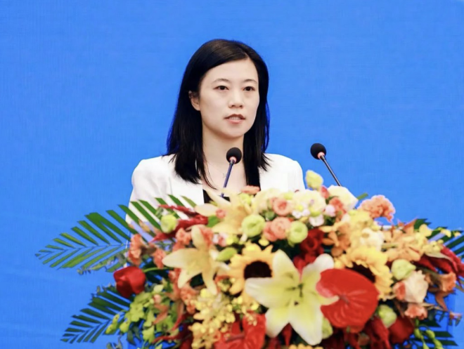 圖為中國寶武鋼鐵集團有限公司能環部環保高級專員張海燕作主題報告。