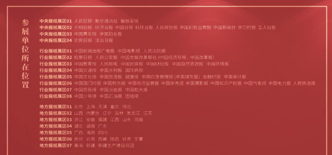 本次展覽將同步在國家新聞出版署官網、中國文明網和人民網同步上線,免費向社會公眾開放,展覽時間持續至今年年底。主展內容分為“新時代黨報圖文展區”“新時代黨報優秀版麵展區”“黨報老報紙展區”“黨報人風采展區”和“黨報人書畫展區”五部分,參展內容、人物具體展示了人民日報社、新華通訊社、解放軍報社等中央新聞單位,部分行業報,全國各省(自治區、直轄市)和新疆生產建設兵團所屬黨報的曆史沿革、基本情況、融合發展成果,遴選展出了黨的十八大以來的近200幅黨報優秀版麵,展示回顧了100份黨的不同曆史時期的老報紙圖片,簡要介紹了百年來尤其是進入新時代後黨報係統湧現出的100餘位優秀報人,集中展示近90幅新時代黨報係統工作者書畫作品。