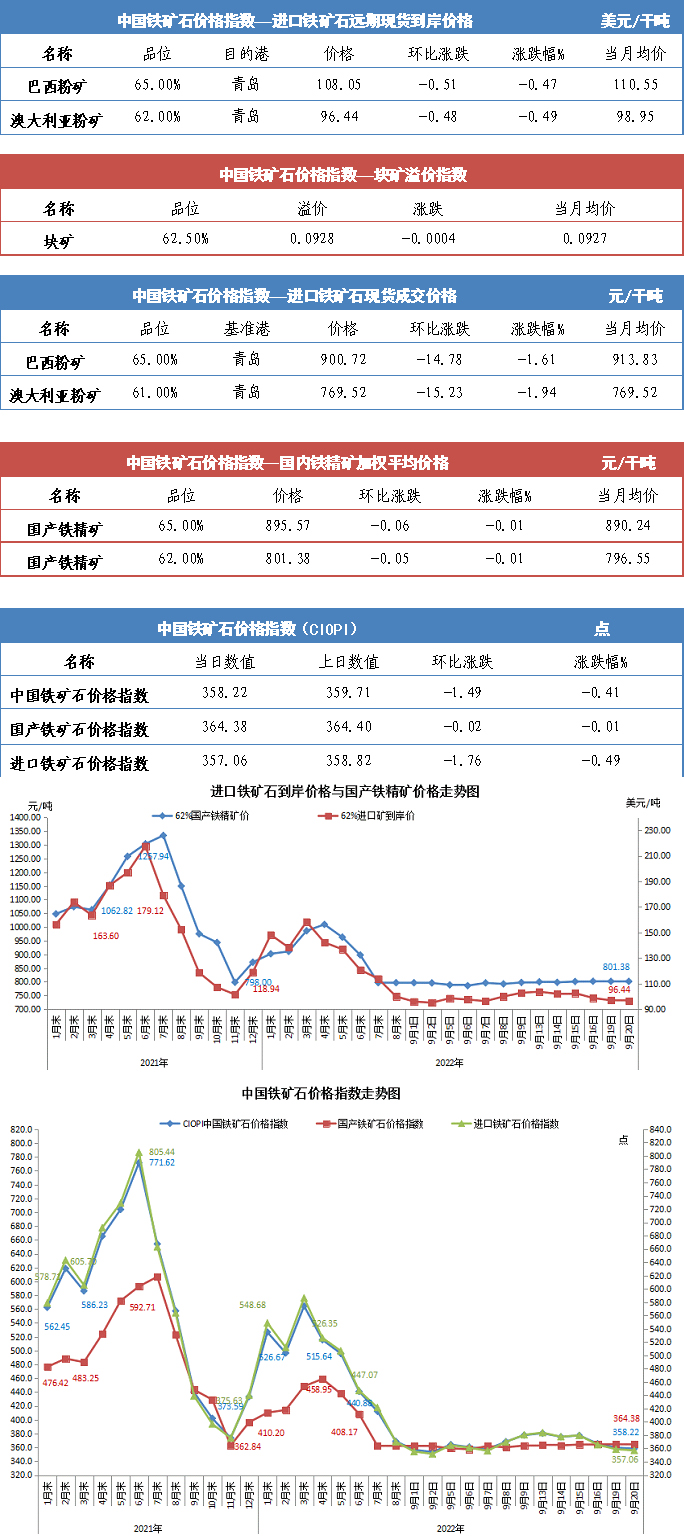 【行業指數】9月20日中國鐵礦石價格指數
