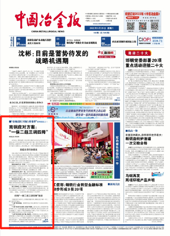 【市場高壓下的行業變革係列報道之三】南鋼應對方案:“一保二超三調四降”