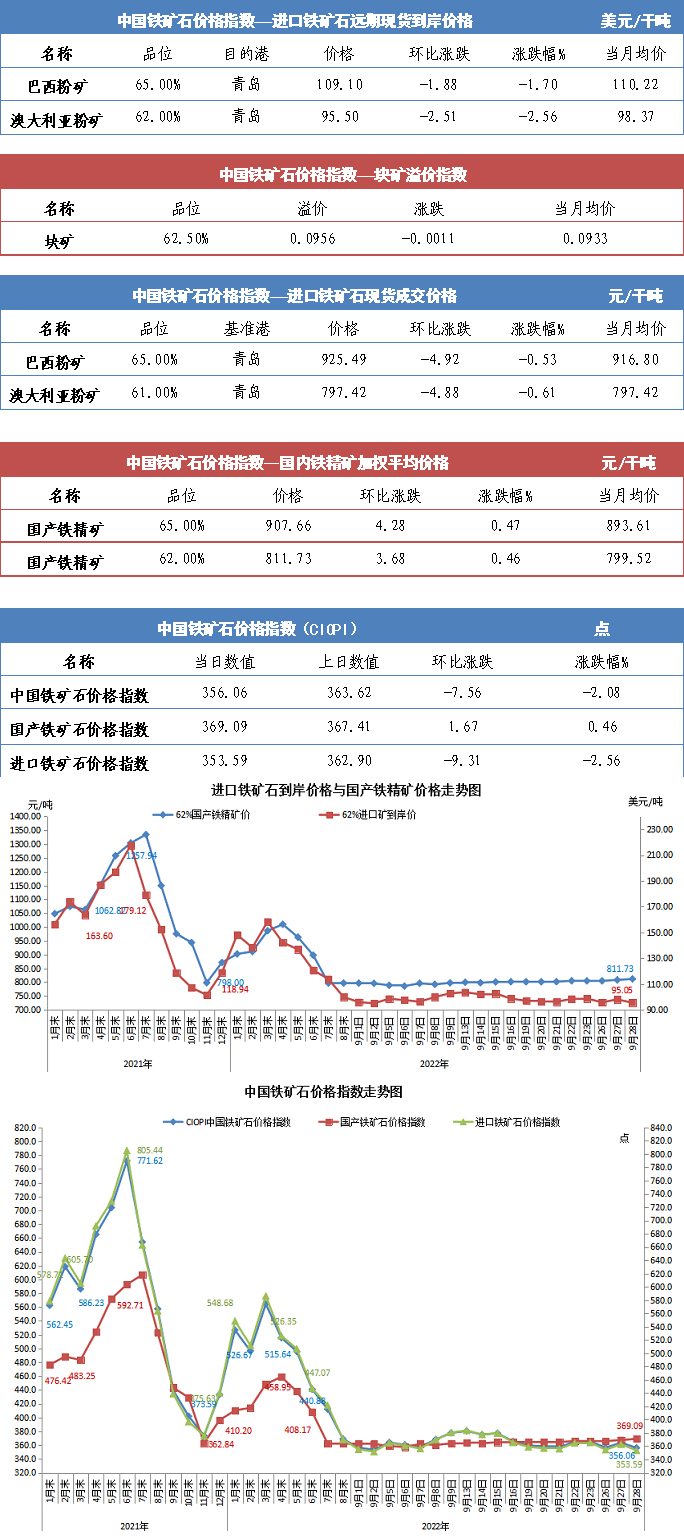 【行業指數】9月28日中國鐵礦石價格指數