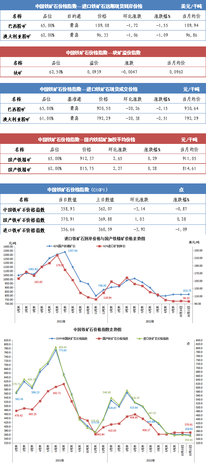 【行業指數】10月11日中國鐵礦石價格指數