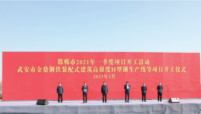 圖為金鼎鋼鐵裝配式建築高強度H型鋼生產線等項目開工儀式。