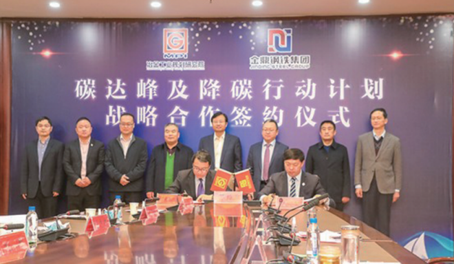 圖為金鼎鋼鐵與冶金工業規劃研究院舉行碳達峰及降碳行動計劃戰略合作簽約儀式。
