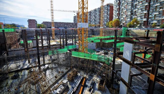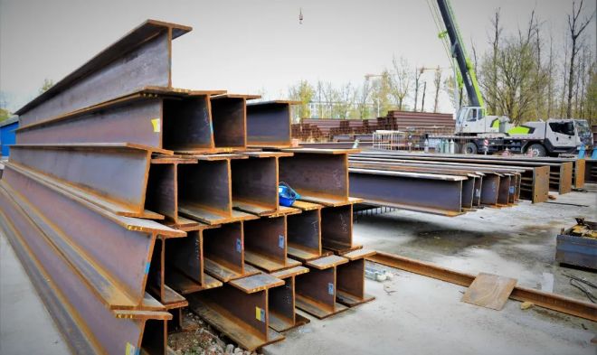 施工現場已經吊裝完成的熱軋H型鋼