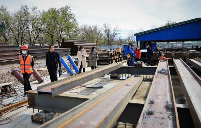 中國冶金報社報道組一行調研采訪遊牧工法現場加工H型鋼