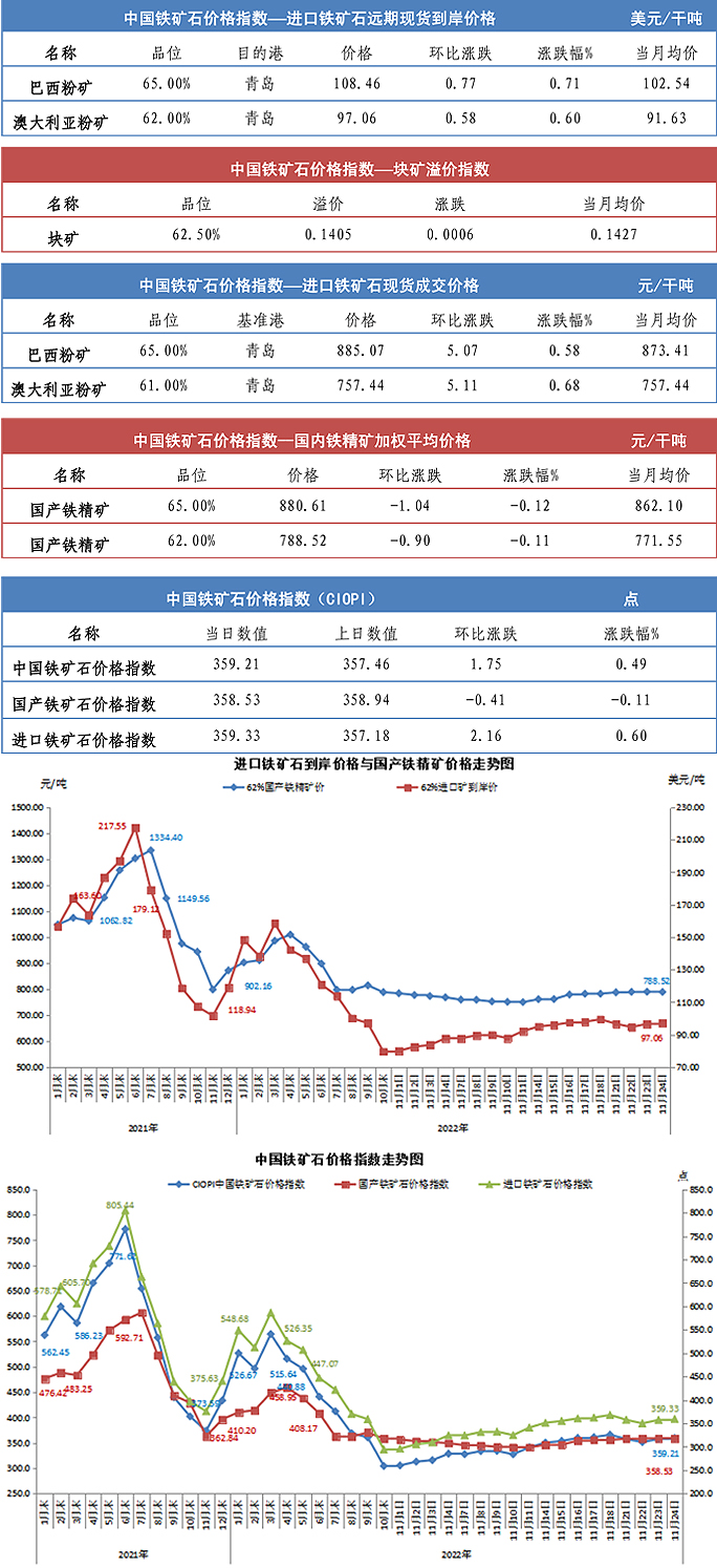 【行業指數】11月24日中國鐵礦石價格指數