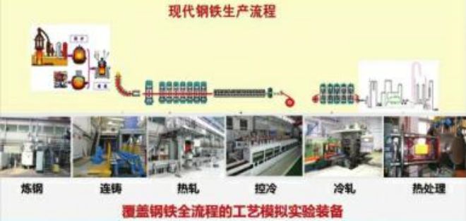 東北大學RAL實驗室長期致力於鋼鐵中試實驗技術和裝備的研發工作,解決了實驗與大生產的工藝條件相似性、大生產工藝的實驗室再現等關鍵技術問題;開發出涵蓋鋼鐵生產全流程的熔煉、熱軋、冷—溫軋、退火、熱模擬等係列化中試實驗裝備,形成了功能完備、高效準確的中試實驗設備技術。