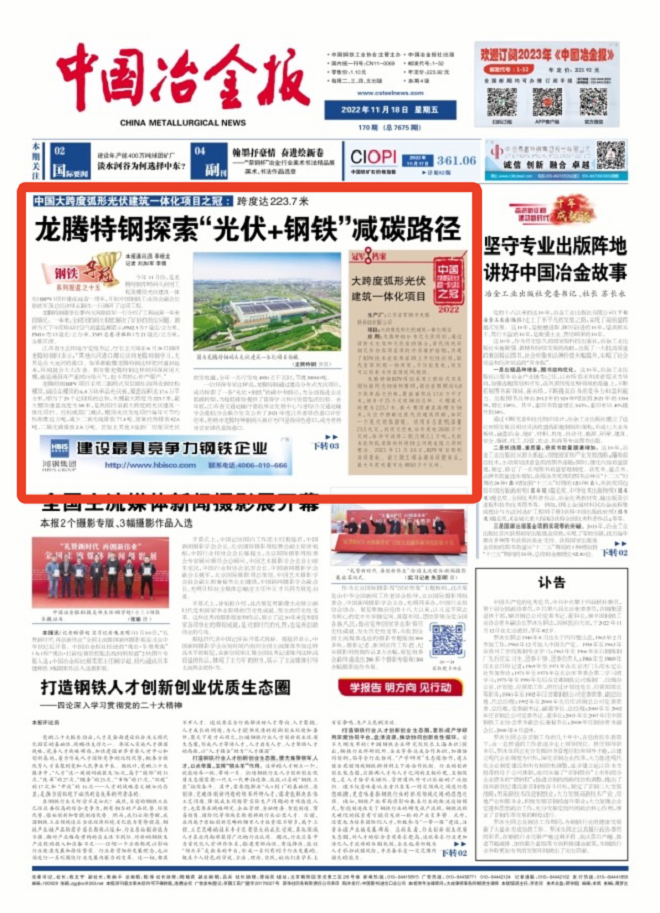 【中國大跨度弧形光伏建築一體化項目之冠】跨度達223.7米 龍騰特鋼探索“光伏+鋼鐵”減碳路徑