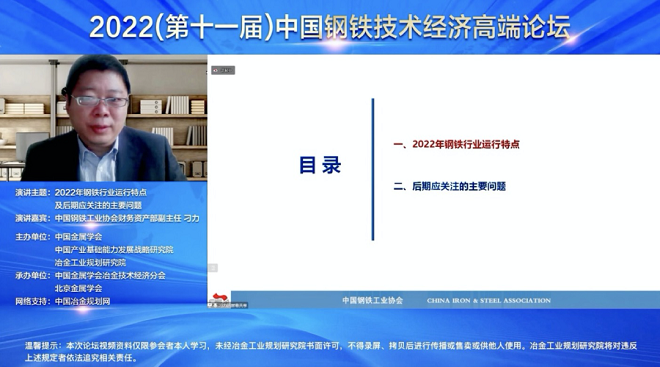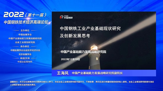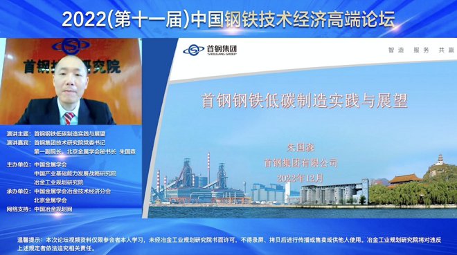 12月10日, 2022(第十一屆)中國鋼鐵技術經濟高端論壇以視頻形式成功舉辦。與會嘉賓圍繞 “科技賦能 卓越運營 鋼鐵新征程”的論壇主題,結合我國鋼鐵行業麵臨的新形勢和新挑戰,積極探討鋼鐵企業科技創新、綠色低碳發展與卓越運營之路,為推動鋼鐵工業高質量發展共謀良策。