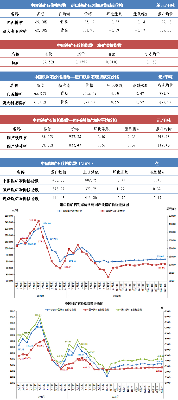 【行業指數】12月16日中國鐵礦石價格指數