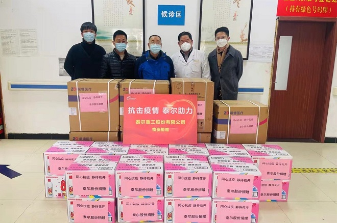 圖為泰爾重工為抗擊新冠肺炎疫情捐贈的物資。 (夏玥 攝)