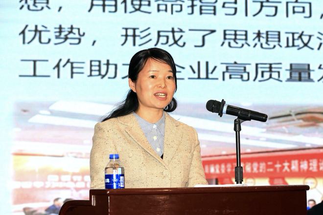 “這zhe一yi係xi列lie成cheng果guo離li不bu開kai我wo們men始shi終zhong堅jian持chi和he加jia強qiang黨dang的de全quan麵mian領ling導dao,遵zun循xun思si想xiang政zheng治zhi工gong作zuo規gui律lv,把ba思si想xiang政zheng治zhi工gong作zuo貫guan穿chuan企qi業ye生sheng產chan經jing營ying各ge方fang麵mian,為wei高gao質zhi量liang發fa展zhan提ti供gong了le澎peng湃pai動dong力li。”她講道。