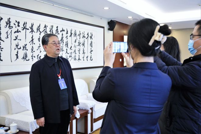 圖為侯軍正在接受《中國冶金報》記者采訪