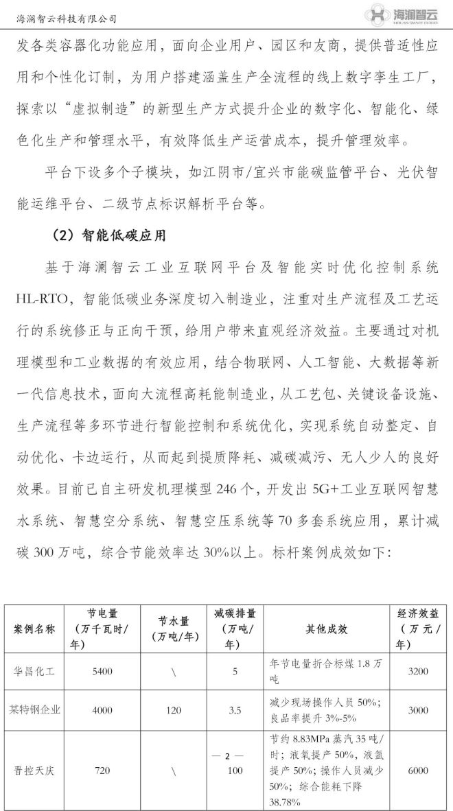 海瀾智雲於2015年在江蘇省江陰市注冊成立,係海瀾集團控股企業。海瀾智雲緊緊圍繞國家“雙碳”戰略,以“工業互聯網碳中和服務商”為定位,以海瀾智雲工業互聯網平台為載體,融合應用新一代信息技術,自主研發可普遍適用於各類工業場景的底層控製係統“HL-RTO”(智能實時優化控製係統),深度運用工業數據,將信息技術與製造業生產過程相融合,探索實施“智能化提質降耗減碳”新路徑,為客戶提供基於工業互聯網平台的智能低碳工廠係統解決方案,助力傳統企業向數字化、智能化、綠色化轉型發展,全麵提升企業競爭力。目前平台上企業用戶超6000 家,注冊用戶超 120 萬個,累計減少碳排放近300萬噸。