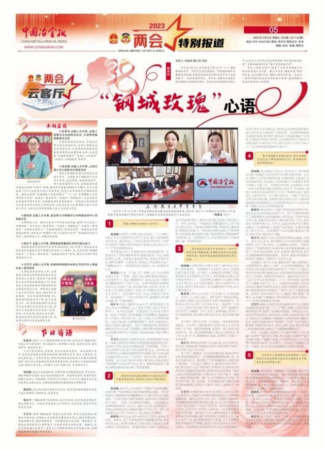 2023年3月6日20時,中國冶金報社兩會報道組邀請到胡淑娥、唐成鳳、楊正平3位鋼鐵行業全國人大代表做客中國冶金報社《兩會雲客廳》,就鋼鐵行業有關話題進行了采訪交流。(周夢達 製作)