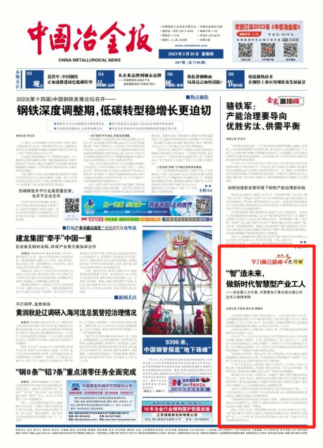 在全國兩會期間,參加十四屆全國人大一次會議的全國人大代表、天津鋼管製造有限公司(下稱天管)管加工事業部元通公司主任工程師李剛提交了設立“中國工匠日”、加大魯班工坊建設保障力度、高質量建設充電基礎設施網絡等建議,引發社會各界的廣泛關注。
