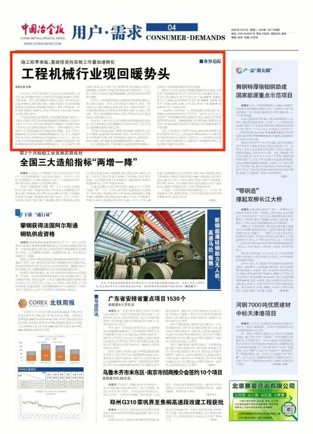 此外,今年《政府工作報告》指出,2023年擬安排地方政府專項債券3.8萬億元,較2022年增加1500億元;“城市更新”連續兩年被寫入《政府工作報告》……這些都將為基建行業景氣度回升提供助力,有望拉動工程機械需求增長,進而對相應“鋼需”形成利好。