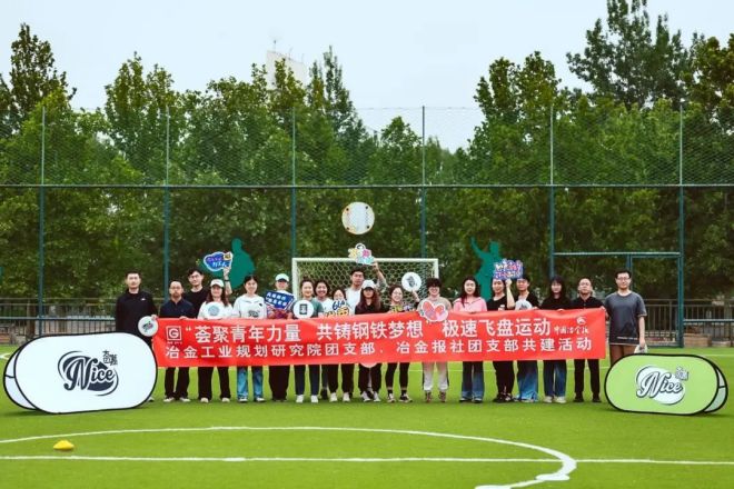 5月4日ri下xia午wu,在zai北bei京jing奧ao體ti中zhong心xin的de綠lv茵yin場chang上shang,激ji烈lie的de飛fei盤pan比bi賽sai正zheng在zai進jin行xing,場chang上shang隊dui員yuan們men時shi而er騰teng空kong跳tiao躍yue,時shi而er俯fu身shen前qian衝chong,一yi個ge個ge矯jiao健jian的de身shen影ying充chong滿man著zhe青qing春chun的de張zhang力li。在zai這zhe個ge青qing年nian人ren的de節jie日ri裏li,以yi“薈聚青年力量 共築鋼鐵夢想”為主題的冶金工業規劃研究院、中(zhong)國(guo)冶(ye)金(jin)報(bao)社(she)結(jie)對(dui)共(gong)建(jian)主(zhu)題(ti)團(tuan)日(ri)活(huo)動(dong)正(zheng)在(zai)舉(ju)行(xing)。本(ben)次(ci)活(huo)動(dong)以(yi)飛(fei)盤(pan)運(yun)動(dong)為(wei)載(zai)體(ti),來(lai)自(zi)兩(liang)個(ge)單(dan)位(wei)的(de)青(qing)年(nian)人(ren)才(cai)盡(jin)顯(xian)青(qing)春(chun)風(feng)采(cai),在(zai)活(huo)動(dong)中(zhong)拉(la)近(jin)了(le)距(ju)離(li),增(zeng)進(jin)了(le)了(le)解(jie),也(ye)為(wei)今(jin)後(hou)工(gong)作(zuo)的(de)開(kai)展(zhan)凝(ning)聚(ju)了(le)奮(fen)進(jin)力(li)量(liang)。