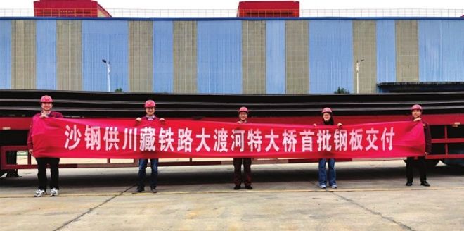 沙鋼供川藏鐵路大渡河特大橋首批鋼板交付