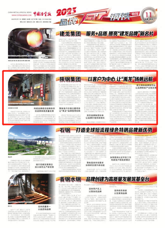 築品質之基,揚品牌之帆。麵對當前鋼鐵行業發展趨勢,陝鋼集團將牢固樹立“以客戶為中心”的品牌工作理念,始終踐行“有脊梁的品質,打造一流建築”的品牌核心價值,堅持圍繞滿足客戶需求和客戶價值實現,通過“禹龍”品牌客戶價值體係打造,不斷提升“禹龍”品牌價值,堅定不移地把品牌建設向高質量發展推進,為中國鋼鐵工業健康發展和持續繁榮貢獻陝鋼力量。
