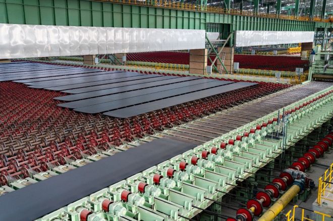 三是建設新產線,實現產品升級。為了優化產品結構,提升產品高附加值,六鋼集團建設了一條3500毫米中厚板生產線,配有鋼坯快速淬火技術、加熱爐智能燃燒技術、一體化水處理技術、多點位表麵檢測技術、產品在線檢測技術等,全線實現智能集中控製、全自動軋鋼;引進了中板表麵質量自動檢測係統,配備了鋼板自動噴標設備及新一代超密軋後加速冷卻等設備,提高產線自動化水平。