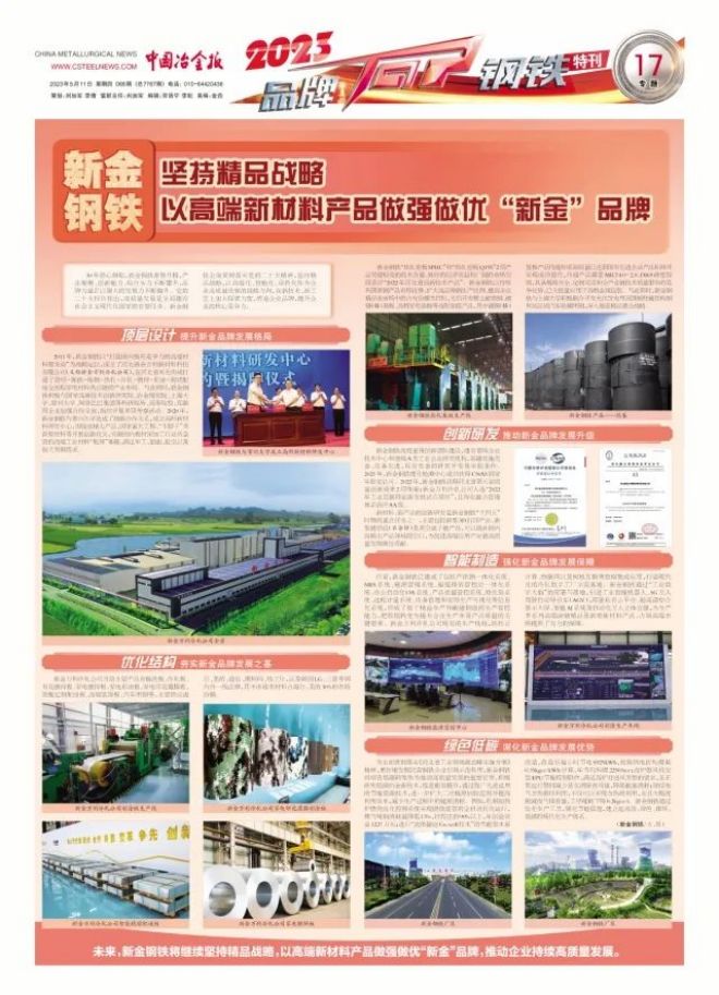 未來,新金鋼鐵將繼續堅持精品戰略,以高端新材料產品做強做優“新金”品牌,推動企業持續高質量發展。
