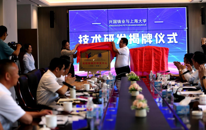 儀式上,狄莎與楊玉柱為“高端特殊球墨鑄鋼件研發中心”揭牌,張玉文與周國成為“氫冶金低碳技術研發中心”揭牌。