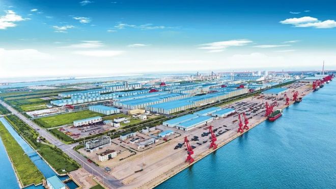 圖為首鋼京唐公司廠區遠眺。(首鋼京唐 供圖)