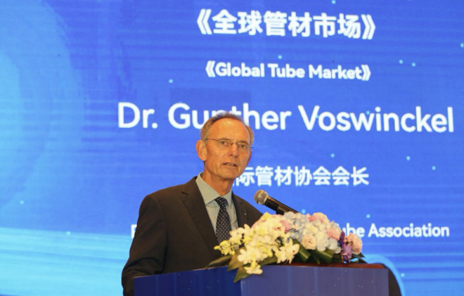 Dr.Gunther Voswinckel從細分市場、管材產量、需求、價格變動等方麵介紹了全球管材市場的情況,並表示,盡管當前國際管材市場還麵臨著來自能源成本增高、通貨膨脹居高不下等方麵的挑戰,但創新和創業精神始終是驅動行業保持可持續發展的動力。他同時表示,工業4.0進程中,人工智能的發展正在帶來更多可以完善整個生產和物流流程的機遇。