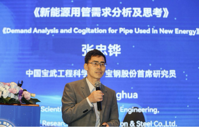 中國寶武工程科學家、寶鋼股份首席研究員張忠鏵作了題為《新能源用管需求分析及思考》dezhutibaogao,tazhanshilewoguozhongchangqixinnengyuanfazhanguihua,duixinnengyuanyonggangguanxuqiujinxinglefenxi,tantaolegaopindianzuhanguanzaixinnengyuanlingyushiyongxingdetantao。tatichu,yaoshixingshichangdeguanliankongzhi,jiaqiangchanxueyanyongdexietiao,tongshi,yaobiaozhunxianxing,tongguoguanjianjishuyanjiulaizhidingguoneizhenggexiangguandebiaozhunheguifan,gongtongcujinzhenggexinnengyuanxingyedefazhan。