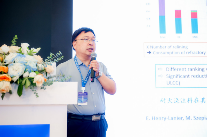 甘菲芳介紹了低碳煉鐵技術、低碳煉鋼技術及其它低碳化技術對耐火材料的影響和要求。她表示,耐火材料助力鋼鐵行業綠色低碳發展,既要“綠色低碳製造”又要“製造綠色低碳”。綠色低碳製造即耐火材料產品製造生產中要綠色低碳:品種質量優良化、資源能源消耗節約化、生產過程環保化以及使用過程無害化。“製造綠色低碳”即幫助鋼鐵企業用戶在應用中達到無害環保、長壽命、減少過程溫降等。