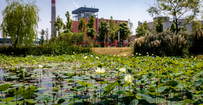 圖為鄂鋼花溪濕地景觀池。(鄂鋼 供圖)