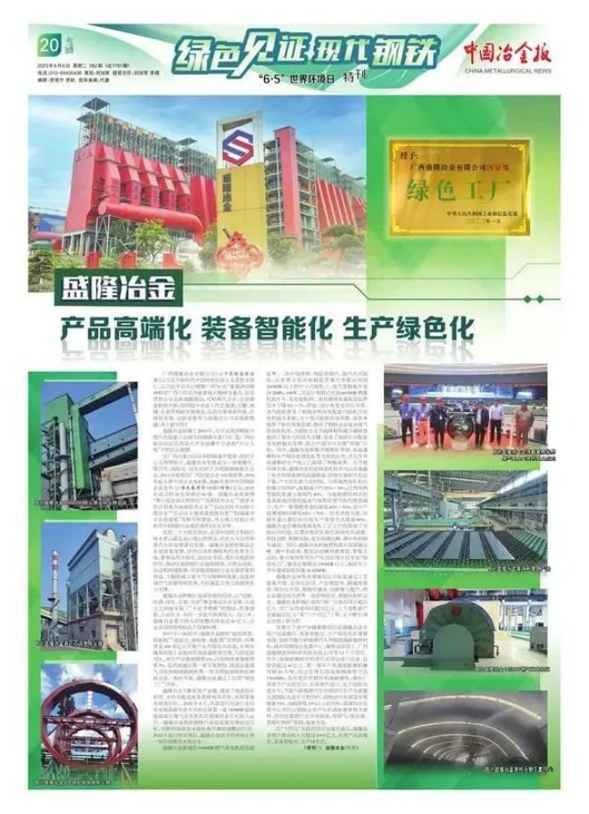 2017年—2022年,盛隆冶金按照“超低排放、低能耗”“高起點、高標準、高配置”總原則,自籌資金300多億元開展產業升級技術改造,實現從建築材到工業板材的高質量轉型發展,與改造前對比,單位產品能耗降低6%,汙染物排放強度降低3%,是西南地區第一家實現燒結、球團全量煙氣活性焦脫硫脫硝和第一家實現超低排放的鋼鐵企業。2021年底,盛隆冶金通過工信部“綠色工廠”評審。