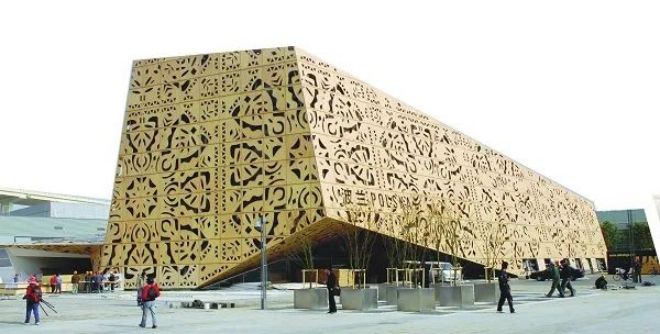 圖為由中冶寶鋼生產的鋼渣透水混凝土和鋼渣透水路麵磚應用於上海世博會廣場建設。