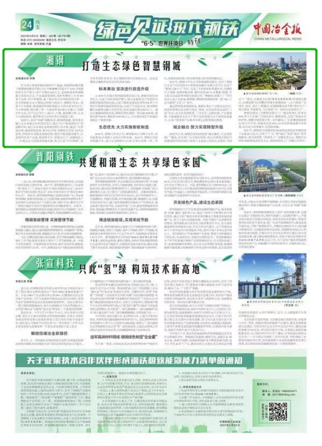 2022年,麵向“雙碳”戰略需求,湘鋼將低碳、綠色理念融入企業發展宗旨和頂層設計,提出“生產製造綠色化”的戰略目標,製訂企業綠色發展規劃和行動方案,通過廠區環境治理、超低排放改造、數字化升級、資源綜合利用、技術改造等,持續優化用能及流程結構,強化節能及能效提升,打造循環經濟產業鏈,推進數字化、智能化生產,創建綠色工廠,實現企業可持續高質量發展,努力打造“百年湘鋼”,成為具有國際競爭力、受人尊敬的現代化鋼鐵企業。這也是湘鋼主題教育走深走實的具體實踐。