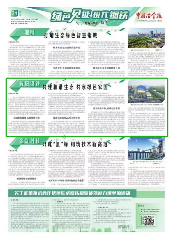一直以來,普陽鋼鐵集團把綠色作為發展的底色,切實踐行綠色低碳可持續發展。2017年,普陽鋼鐵被列入工信部第一批“綠色工廠”,2018年獲評為“綠色發展標杆企業”,2019年被評為“綠色發展優秀企業”,2021年再次獲評為“綠色發展標杆企業”。2022年,普陽鋼鐵積極打造綠色低碳產品,風電塔筒用鋼板、橋梁用結構鋼、壓力容器用鋼、耐候結構鋼等4類產品獲得河北省綠色設計產品稱號;著力提升水效,集團子公司廣普焦化被授予2022年度國家級水效領跑者稱號。2023年,普陽鋼鐵全流程超低排放改造通過驗收並在中國鋼鐵工業協會網站公示,實現清潔運輸比例提升,積極創建績效A級企業。