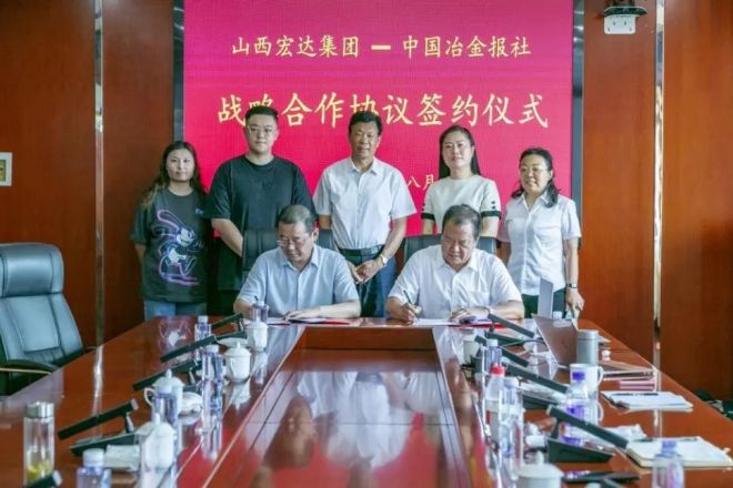 8月2日,山西宏達鋼鐵集團(以下簡稱宏達鋼鐵)與中國冶金報社簽訂戰略合作協議。未來,雙方將在企業全媒體宣傳推廣、品牌塑造、新技術引進、信息谘詢等方麵開展全麵、深入的合作。在宏達鋼鐵董事長張會民的見證下,宏達鋼鐵總經理劉世峰與中國冶金報社黨委書記、社長陳玉千分別代表雙方在戰略合作協議書上簽字。
