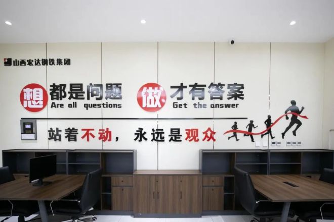 圖為宏達鋼鐵企業文化展示牆