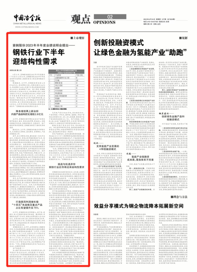 首鋼股份2023年半年度業績說明會提出——鋼鐵行業下半年迎結構性需求