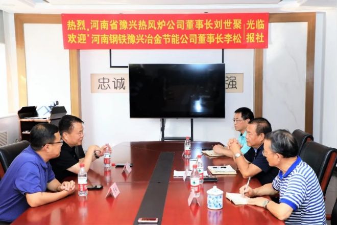 8月29日,河南省豫興熱風爐工程技術有限公司董事長劉世聚、河南鋼鐵豫興冶金節能工程技術有限公司董事長李鬆一行到中國冶金報社座談交流。中國冶金報社黨委書記、社長陳玉千,副社長熊餘平,記者夏傑生參加了交流。