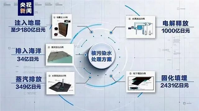 圖為核汙水5種處理方式需付出的費用。(圖片來源於網絡)