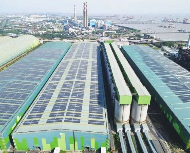 向光伏要低碳,提高綠電比例。屋頂光伏是零碳能源,能夠長期為鋼廠提供低成本、gaoshuchugonglvdeqingjienengyuan。zhongyebaogangjiakuaiguangfuxiangmujianshe,goujianyixinnengyuanweizhutidexinxingdianlixitong,shixianjienengjiangtan。zhongyebaogangjianshedeegangguangfugongchengweiyuechenggangtiechangqu,baokuoshuimianguangfuhewudingguangfulianglei,guangfuzongzhuangjirongliangyue7.77兆(zhao)瓦(wa)。中(zhong)冶(ye)寶(bao)鋼(gang)建(jian)設(she)的(de)水(shui)麵(mian)光(guang)伏(fu)運(yun)行(xing)效(xiao)果(guo)良(liang)好(hao),相(xiang)比(bi)於(yu)業(ye)內(nei)其(qi)他(ta)方(fang)案(an),相(xiang)同(tong)裝(zhuang)機(ji)容(rong)量(liang)下(xia),發(fa)電(dian)效(xiao)率(lv)更(geng)高(gao),助(zhu)推(tui)鄂(e)鋼(gang)生(sheng)產(chan)生(sheng)活(huo)方(fang)式(shi)綠(lv)色(se)轉(zhuan)型(xing)。寶(bao)鋼(gang)股(gu)份(fen)寶(bao)山(shan)基(ji)地(di)煤(mei)場(chang)全(quan)門(men)架(jia)料(liao)場(chang)光(guang)伏(fu)發(fa)電(dian)項(xiang)目(mu)占(zhan)地(di)麵(mian)積(ji)為(wei)22萬平方米,平均每年可節約標準煤4500餘噸、減少二氧化碳減排約1.2萬噸。為適應該地區常年風力大、台風天氣頻繁等客觀條件,中冶寶鋼技術團隊著重優化光伏板防風措施,巧妙設置夾具,提高光伏板在30米高的廠房頂部的穩定性。中冶寶鋼按照“順坡就勢”方式建設羅涇園區寶之雲IDC微電網項目,可有效降低光伏板對屋麵結構的壓力,提高結構穩定性,平均每年發電量超過1200萬千瓦時。