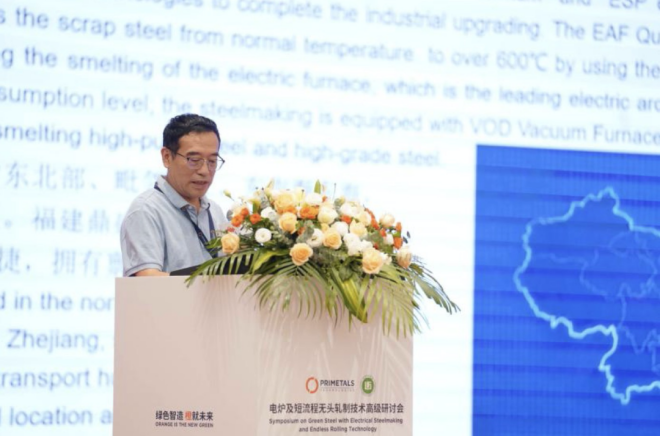 福建鼎盛鋼鐵公司副總經理李挺就量子電爐結合ESP無(wu)頭(tou)軋(zha)製(zhi)產(chan)線(xian)的(de)高(gao)效(xiao)率(lv)和(he)極(ji)致(zhi)能(neng)耗(hao),分(fen)享(xiang)了(le)低(di)碳(tan)綠(lv)色(se)生(sheng)產(chan)的(de)經(jing)驗(yan)。他(ta)表(biao)示(shi),未(wei)來(lai)福(fu)鼎(ding)鋼(gang)鐵(tie)將(jiang)堅(jian)持(chi)采(cai)用(yong)百(bai)分(fen)百(bai)純(chun)廢(fei)鋼(gang)冶(ye)煉(lian)的(de)量(liang)子(zi)電(dian)爐(lu)工(gong)藝(yi)和(he)ESP近終形無頭軋製技術,並疊加新能源物流、生sheng物wu炭tan的de應ying用yong和he生sheng物wu質zhi負fu碳tan排pai放fang工gong藝yi,生sheng產chan更geng多duo滿man足zu產chan品pin應ying用yong終zhong端duan的de綠lv色se需xu求qiu的de碳tan中zhong和he鋼gang材cai,為wei下xia一yi步bu企qi業ye應ying對dui邊bian境jing碳tan關guan稅shui提ti供gong有you效xiao助zhu力li。