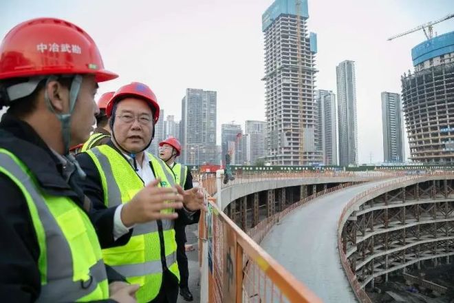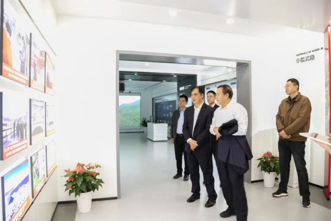 采訪組一行還在座談會前後在中冶武勘企業展廳和全國首個超大型圓環支撐體係的地下空間結構、圓環支撐直徑達到188米的武漢周大福金融中心深基坑項目現場進行參觀,直觀感受到了中冶武勘在勘察設計、智慧應用、新能源等領域的強勁實力和快速發展。