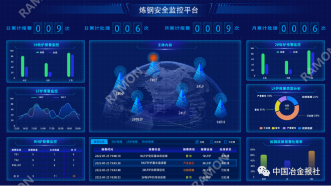 該平台以工業互聯網為基礎,以裝備全生命周期數字孿生管理係統為核心,開發麵向鋼鐵行業應用解決方案。提供從研發設計、生產管控、經營管理、售後服務等核心業務環節。包括智能一鍵式煉鋼係統、智慧連鑄係統、生產準時化係統、設備遠程運維係統,以及廢鋼遠程判級係統等。
