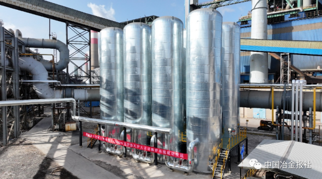 圖為由豫興公司建設的遼寧鞍山寶得鋼鐵公司1080m³高爐熱風爐無波動換爐裝置配套的儲氣罐設備。