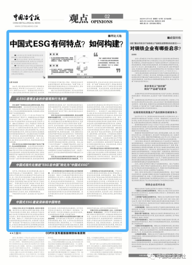 中國式ESG建設須體現中國特色